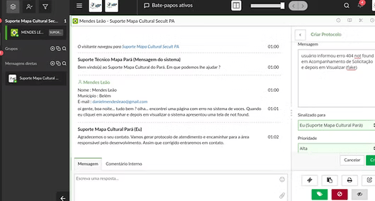 A implantação do serviço de suporte técnico ao Mapa Cultural do Pará promoveu melhorias estruturantes na rotina de atendimento e na estabilidade operacional da plataforma. Com uma equipe dedicada e processos organizados por níveis, o atendimento passou a ser realizado de forma mais rápida, clara e eficiente. A triagem diária das mensagens fora do horário de expediente, combinada a uma resposta sistematizada e dentro dos prazos definidos, garantiu mais previsibilidade para os usuários e mais fluidez no gerenciamento de solicitações.