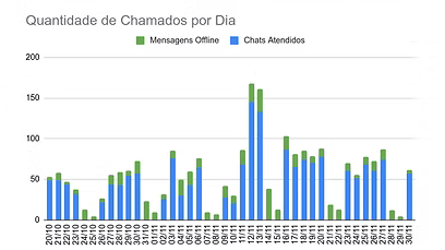 Durante o período da consultoria, foram registrados 23 mil atendimentos, somando interações em tempo real via chat e respostas a mensagens offline. A média diária de mensagens fora do expediente foi de 30, todas respondidas no turno seguinte. O serviço manteve uma taxa de resposta dentro do prazo máximo de 2 horas úteis, garantindo agilidade mesmo em momentos de alta demanda.